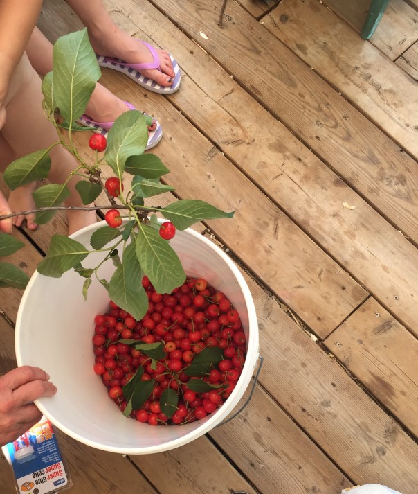 Hey! I was lucky enough to find a sour cherry tree in my neighbourhood. So I took the kids and we loaded up.