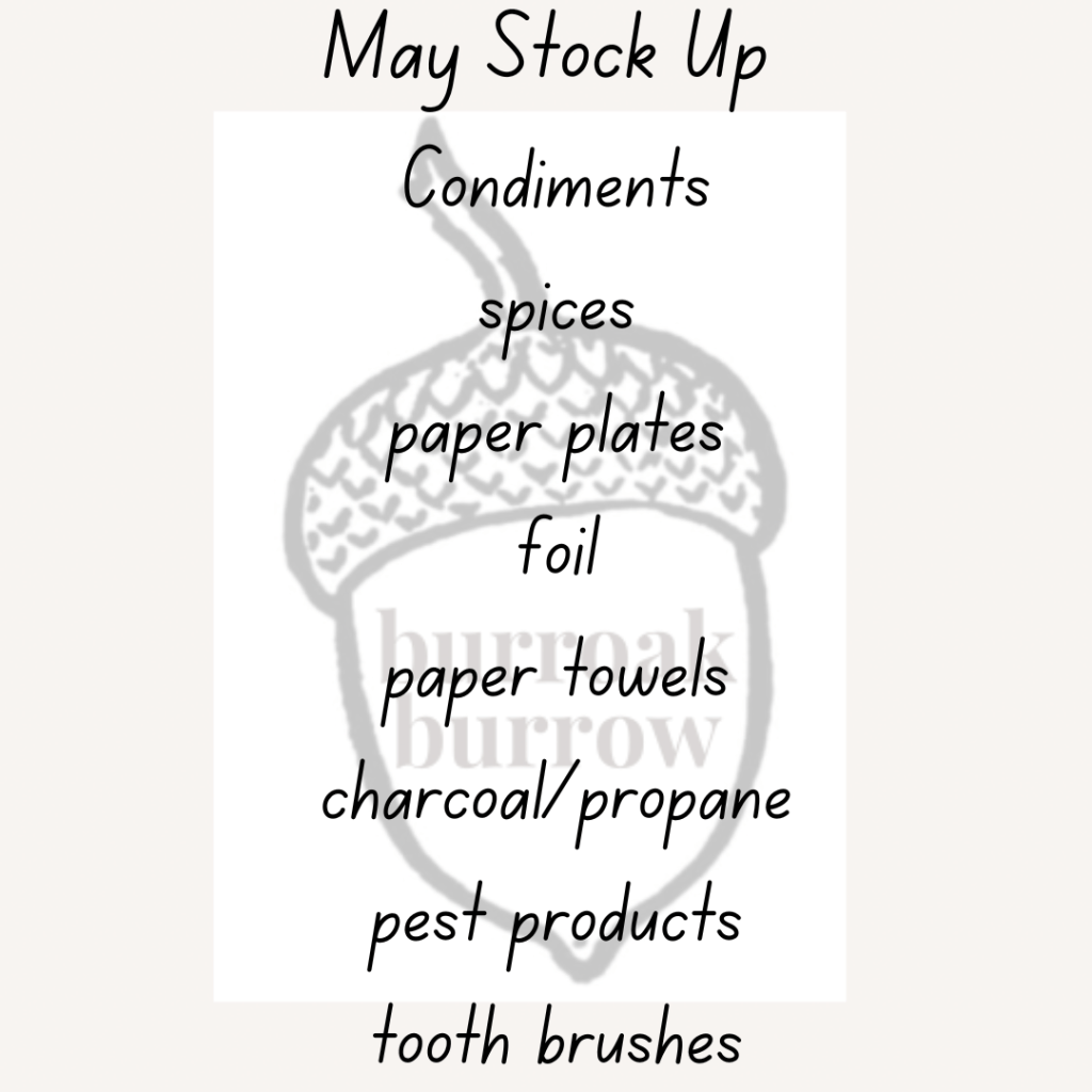 Tags: food storage, May, preparedness, prepping, stock up challenge