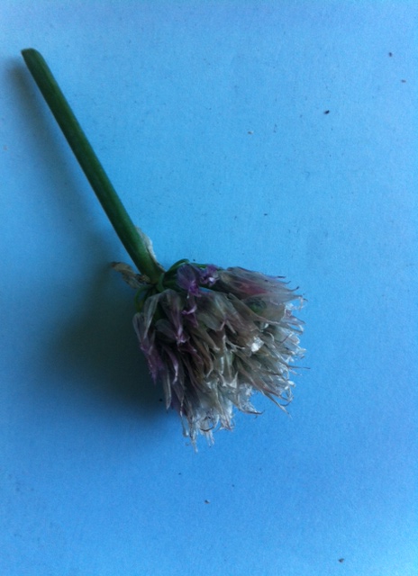 To start, you need to find a clump of chives that has flowered. Select flowers that have mostly dried out.